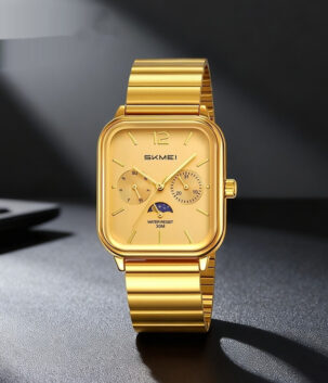 Stylish Multifunctional Square Watch With A Six-hand Moon Phase Display Designed For Business And Featuring Water Resistance